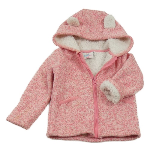 Růžová melírovaná pletená zateplená propínací mikian s kapucňou Topomini