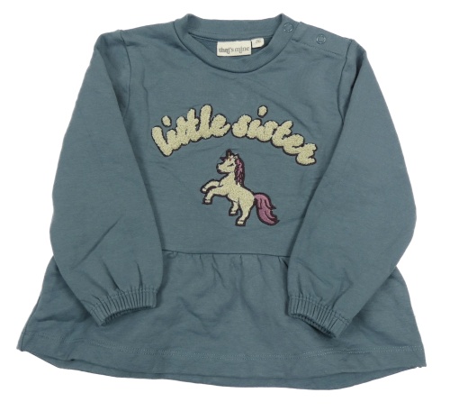 Tmavomodrošedá tepláková tunika s jednorožcom a nápisom