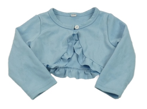 Světlemodré žebrované propínací bolérko s volánikmi