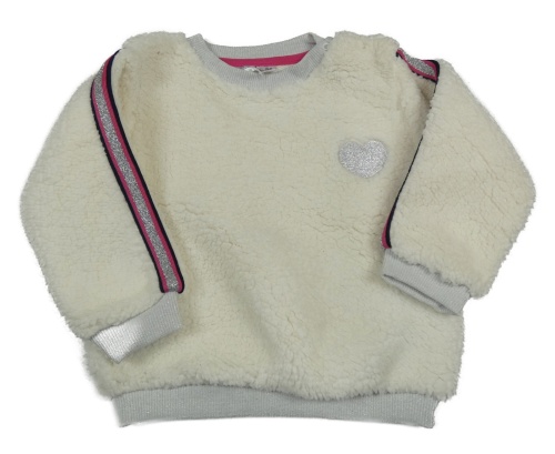 Smetanovo-farebná huňatá mikina s pruhmi a srdcem Ergee