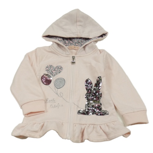 Svetloružová prepínaci mikina s králíkem z překlápěcích flitrů a kapucňou