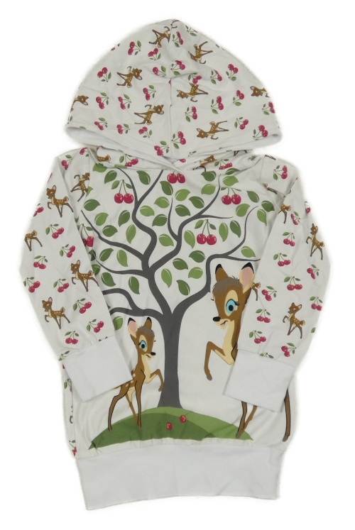 Biela ľahká šatová mikina s koloušky a stromom a kapucňou