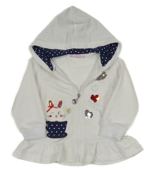 Biela prepínaci mikina s králikom a kapucňou