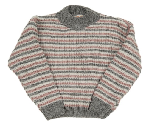 Sivo-ružovo-biely pruhovaný žinylkový sveter Jomana