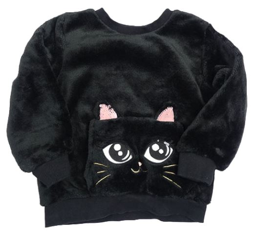 Čierna plyšová mikina s kočičkou/kapsou s flitrami
