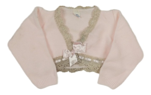 Svetloružové svetrové bolerko s čipkou a mašlou