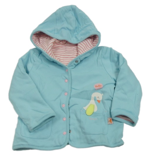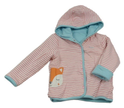 Bielo-ružová pruhovaná zateplená obojstranná mikina s líškou a kapucňou
