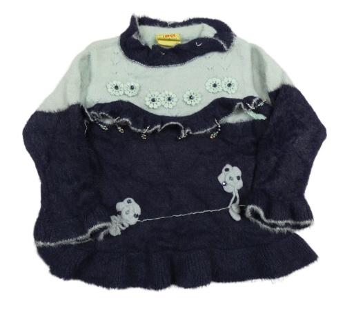 Tmavomodro-mátový chlpatý sveter s kvetmi a korálkami