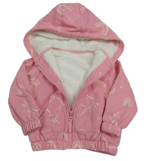 Ružová prepínaci zateplená mikina s jednorožcami a duhami a kapucňou Nutmeg