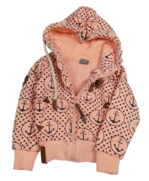 Broskvová prepínaci tepláková mikina s kotvami a hviezdičkami a nášivkami a kapucňou