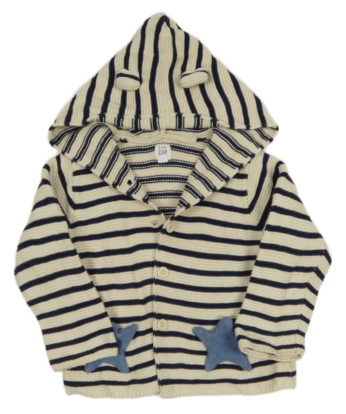 Smetanovo-tmavomodrý pruhovaný prepínaci sveter s hviezdami a kapucňou GAP
