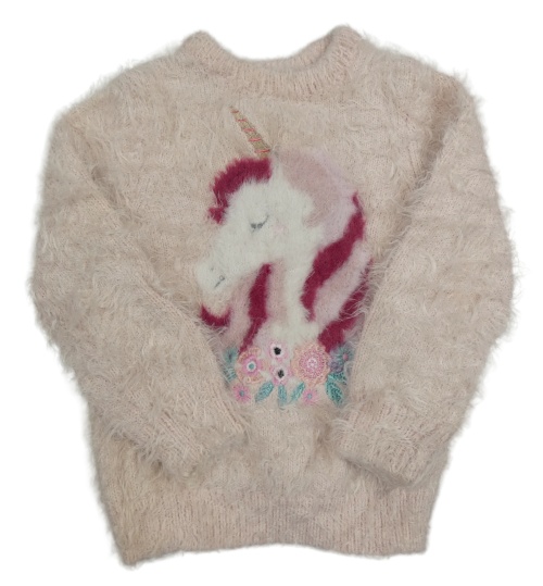 Svetloružový chlpatý sveter s jednorožcom V by Very