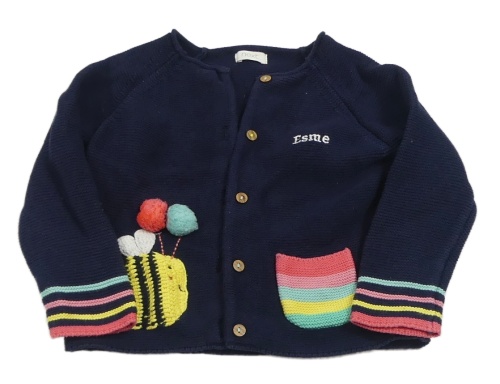 Tmavomodro-farebný prepínaci sveter s včielkou a nápisom Next