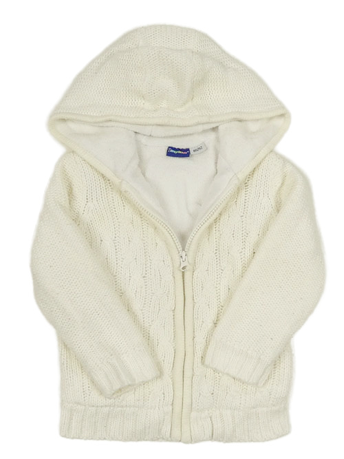 Smotanový pletený prepínaci podšitý sveter so vzorom a kapucňou lupilu