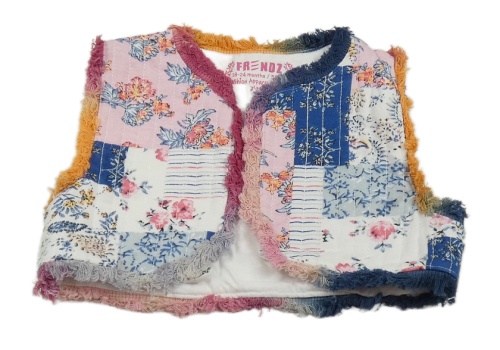 Bielo-modro-ružovo-farebná kvetovaná vzorovaná vesta s třísněmi