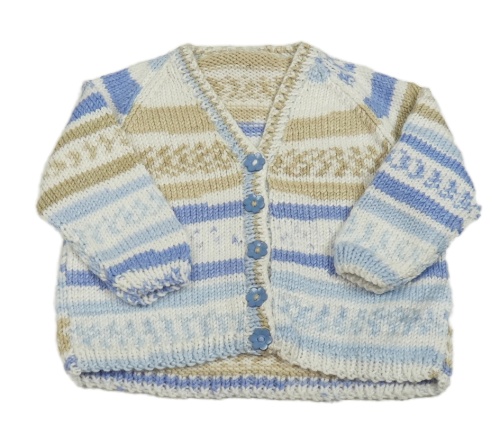 Bielo-modro-béžový vzorovaný prepínaci sveter