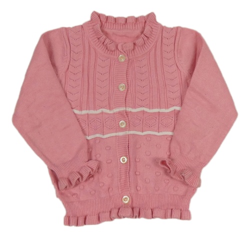 Ružový prepínaci sveter s perforovaným vzorom a bodkami