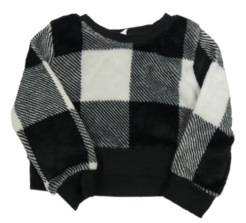 Čierno-svetlosivá kockovaná chlpatá crop mikina Shein