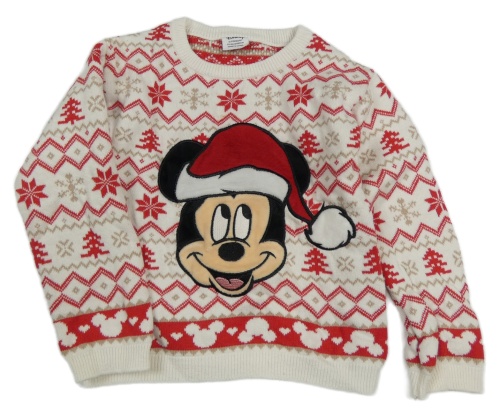 Bielo-červeno-béžový vzorovaný sveter s Mickeym Primark