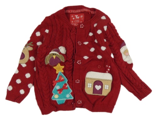 Červený sveter s vánočním motívom Tu