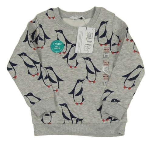 Nové - sivá melírovaná mikina s tučňáčky M&S
