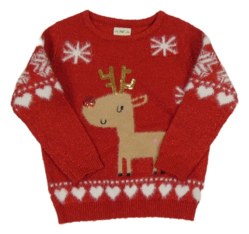 Červený sveter s vločkami a sobom F&F
