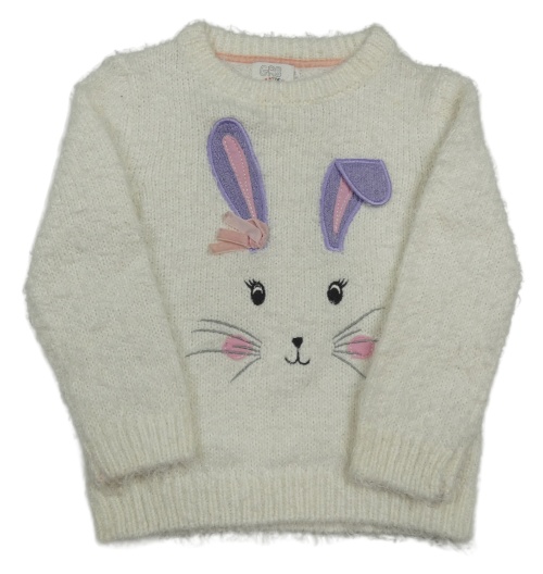 Biely chlpatý sveter so zajačikmi