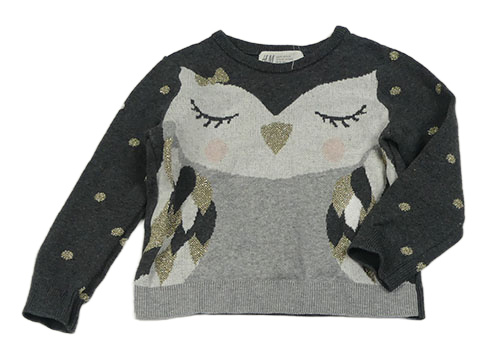 Tmavošedo-sivý melírovaný sveter so sovičkou a bodkami H&M