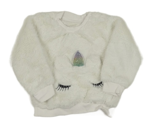 Biela kožušinová mikina s jednorožcom Nutmeg