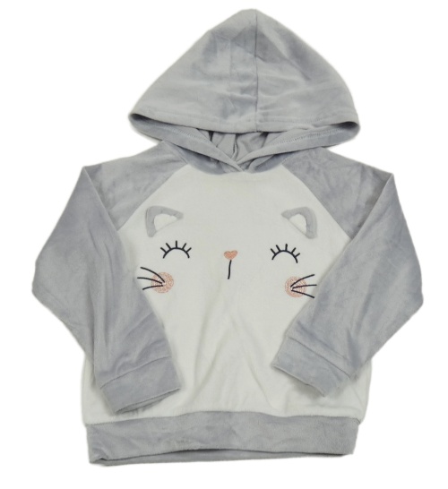 Bílo - lila plyšová mikiuna s obličejem a kapucňou