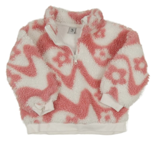 Bielo-ružová huňatá vzorovaná mikina Tu