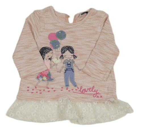 Svetloružový melírovaný sveter s dievčatky a bielým čipkovým volánikom s kvetmi George