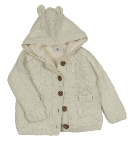 Svetlobéžový vlnený zateplený prepínaci sveter s kapucňou M&S