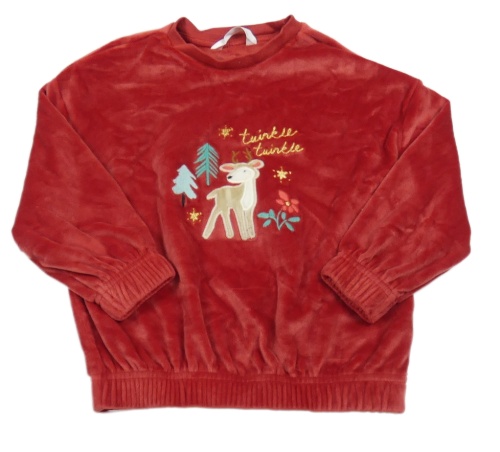 Červená plyšová mikina so sobom a stromčekmi M&S