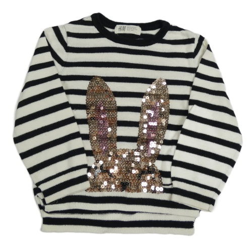 Čierno-biely pruhovaný sveter so zajícem z flitrů H&M