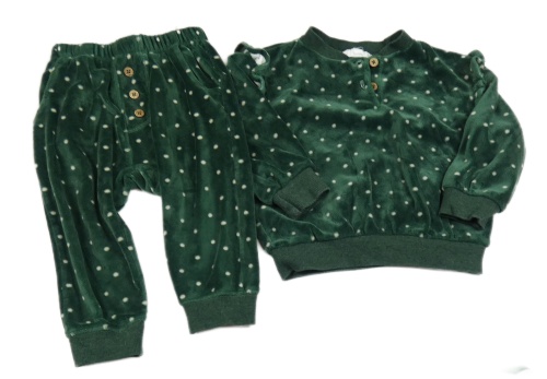 2set - Tmavozelená bodkovaná á plyšová mikina s volánky + tepláky