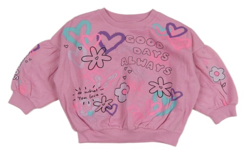 Ružová oversize mikina s nápismi a kvetmi a srdiečkami Matalan
