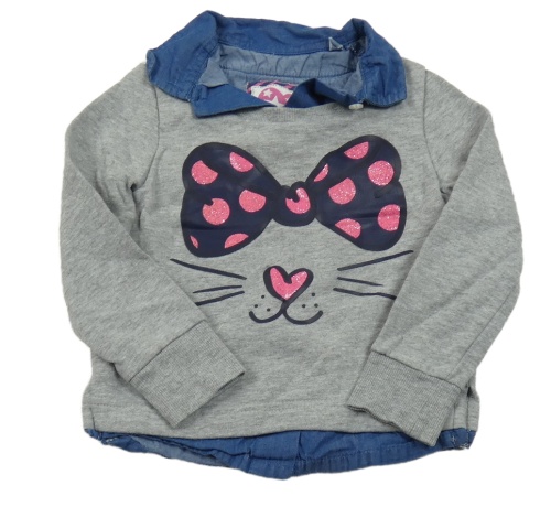 Sivá mikina s halenkovým prvkem a mašlou s ňufáčikom C&A