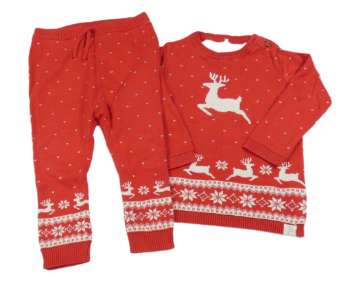 • 2set - Červeno-biely sveter so sobom a norským vzorem + pletené vzorované tepláky George