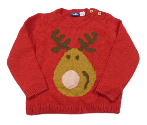 Červený pletený sveter so sobom a blikátkem a medodií lupilu