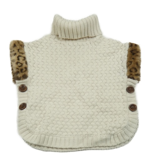 Biela vzorované svetrové pončo s hnědou kožešinou a rolákom ASPEN KIDS