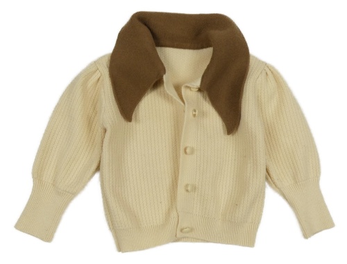 Vanilkový rebrovaný pletený prepínaci sveter s hnedým golierikom a uškami