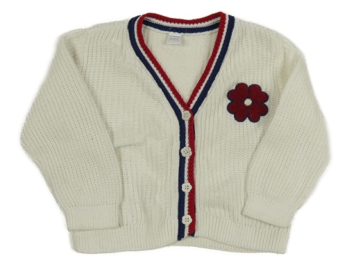 Biely rebrovaný pletený prepínaci sveter s květem a pruhmi LC WaIKIKI