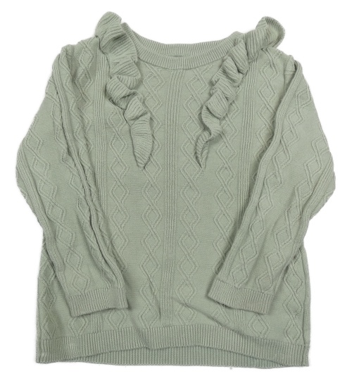 Svetlozelený vzorovaný ľahký sveter s volánikmi Tu
