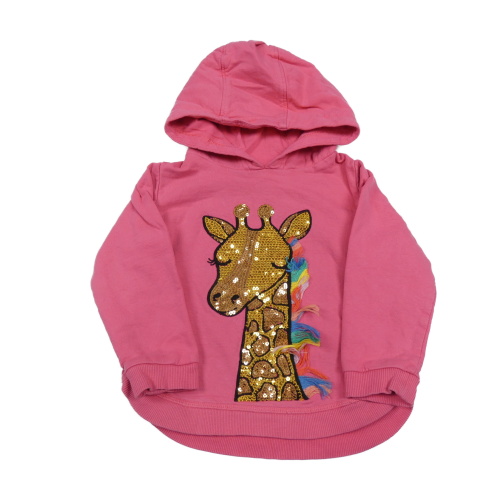 Ružová mikina s žirafou z flitrů a kapucňou Bluezoo