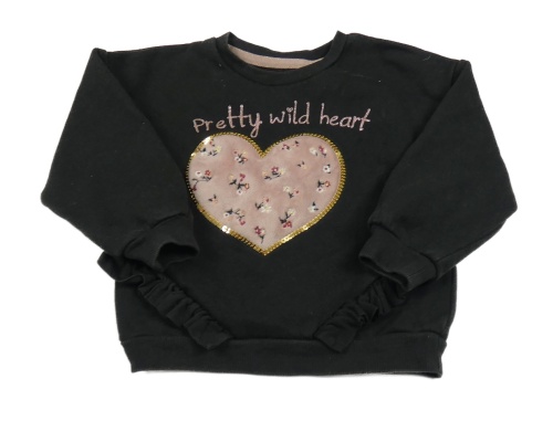 Čierna mikina so srdcem s kvetmi a flitrami C&A