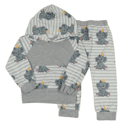 2set - Sivo-pruhovaná ľahká mikina so slonmi a kapucí + tepláky