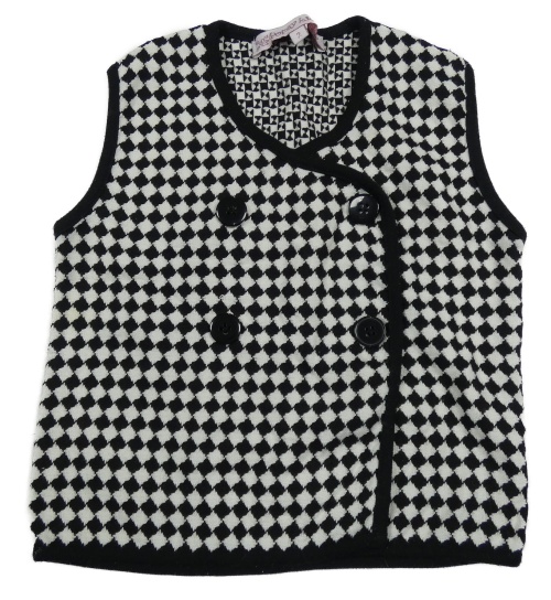 Čierno-biela károvaná pletená prepínaci vesta Popsy Kids