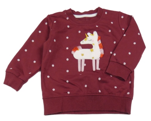 Vínová bodkovaná á mikina s jednorožcom