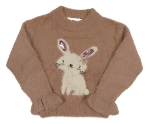Staroružový chlpatý sveter so zajačikom s flitrami a volánikmi C&A